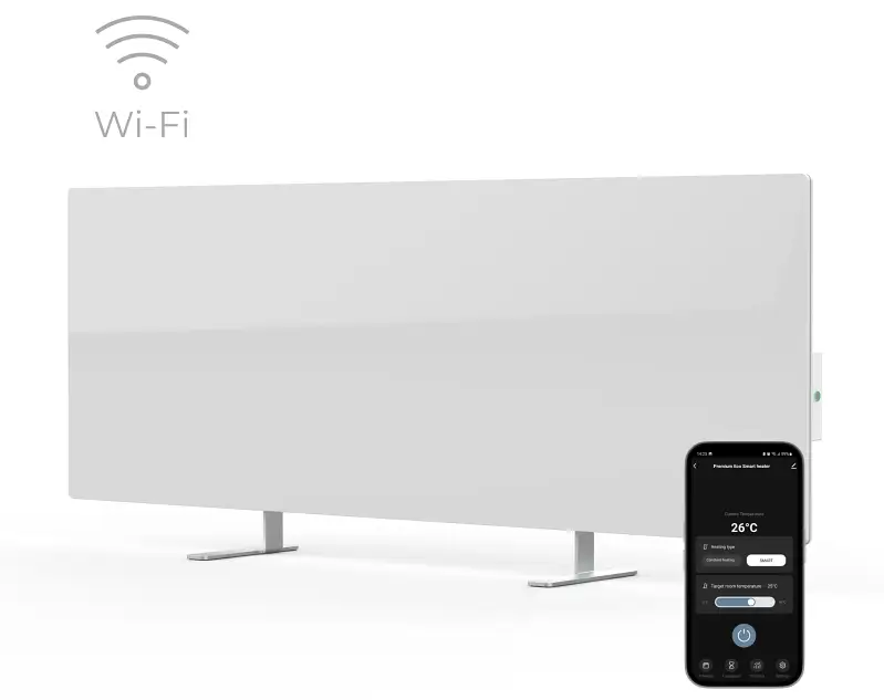 Panel lze nastavit na teplotu 60 °C–120 °C, přičemž vytopí prostor o velikosti až 30 m² dle požadované teploty v místnosti. Přístroj je velmi tenký, elegantní, vyrobený z ekologických materiálů a bezpečný (dětský zámek, vypnutí při náhodném pádu). V interiéru jej lze skvěle schovat ke stěně, aniž byste ovlivnili energetickou účinnost a rovnoměrné rozložení tepla. Velký bonus pak představuje možnost ovládání z mobilní aplikace pro Android a iOS, ve které můžete sledovat a upravovat teplotu v místnost, hlídat spotřebu elektrické energie, ale i měnit automatické zapínání a vypínání.