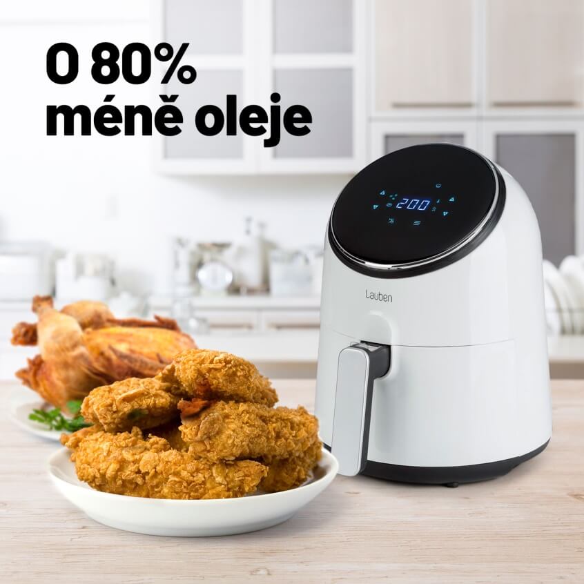 Nová fritéza zachovává jídlo stejně křupavé, chutné a voňavé, jako jste zvyklí, jen ho zbaví mastnoty, aniž byste přitom museli používat neefektivní horu savých ubrousků. Nežádoucí mastnota navíc běžně napomáhá vzniku různých civilizačních nemocí. Fritéza Lauben nabízí hned osm různých režimů, dopředu přizpůsobených různým surovinám, ale samozřejmě můžete i sami experimentovat a díky časovači a voliči teploty si svoje jídlo můžete upravit a přizpůsobit dle vlastních požadavků. Celé to můžete ovládat přes přehledný dotykový displej. Ty části fritézy, které mají největší tendenci k ušpinění, pak můžete bez starostí hodit do myčky. Za zmínku pak stojí i líbivý, minimalistický vzhled.