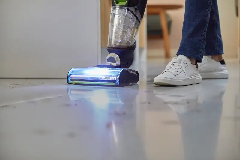 Revoluční tyčový vysavač CrossWave X7 Plus Cordless Pet Pro s výkonným digitálním motorem vám zajistí až 30 minut bezdrátové svobody uklízení. Novinka zvládne opravdu důkladný úklid 3 v 1 – CrossWave X7 Plus Cordless Pet Pro vysává, vytírá a pomáhá vysoušet podlahy najednou, přičemž nově mezi tím zvládne i rychlé vysávání. Nový režim TURBO PET umožňuje vyšší výkon úklidu na mokro, zejména v případě nepořádku po domácích mazlíčcích a každodenních zaschlých skvrn – ať už na dlaždicích, dřevěných podlahách, laminátu nebo PVC. Na rozdíl od úklidu s mopem a kbelíkem udržuje technologie dvou nádrží Bissell čistou a špinavou vodu odděleně. To znamená, že s bezdrátovým vysavačem CrossWave X7 Plus Pet Pro čistíte podlahy vždy čerstvou vodou. LED osvětlení si posvítí na zvířecí chlupy, špínu a nečistoty při čištění podél podlahových lišt a v rozích místností. Jakmile je práce hotová, automatická samočisticí stanice vyčistí kartáčový válec a propláchne vnitřek stroje tak, abyste mezi domácími pracemi nemuseli provádět ještě ruční čištění přístroje.
